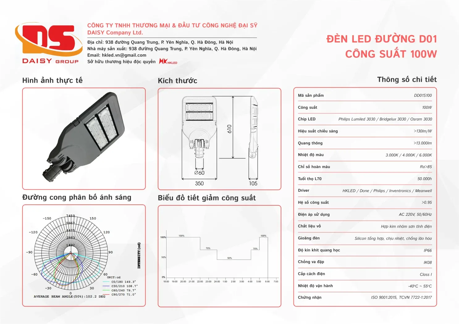 Đèn LED đường phố D01 Module SMD – Công suất 100W