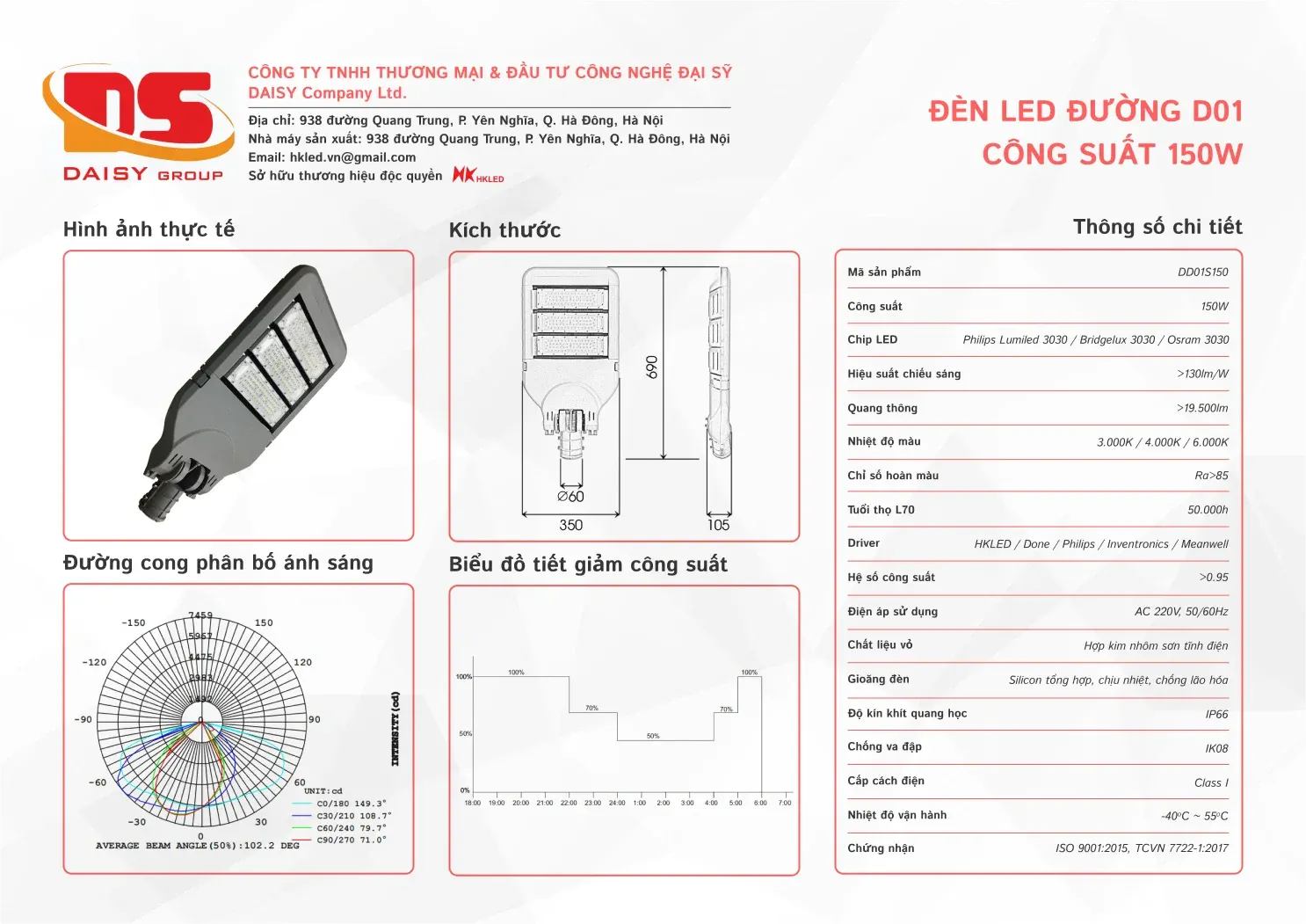 Đèn LED đường phố D01 Module SMD – Công suất 150W