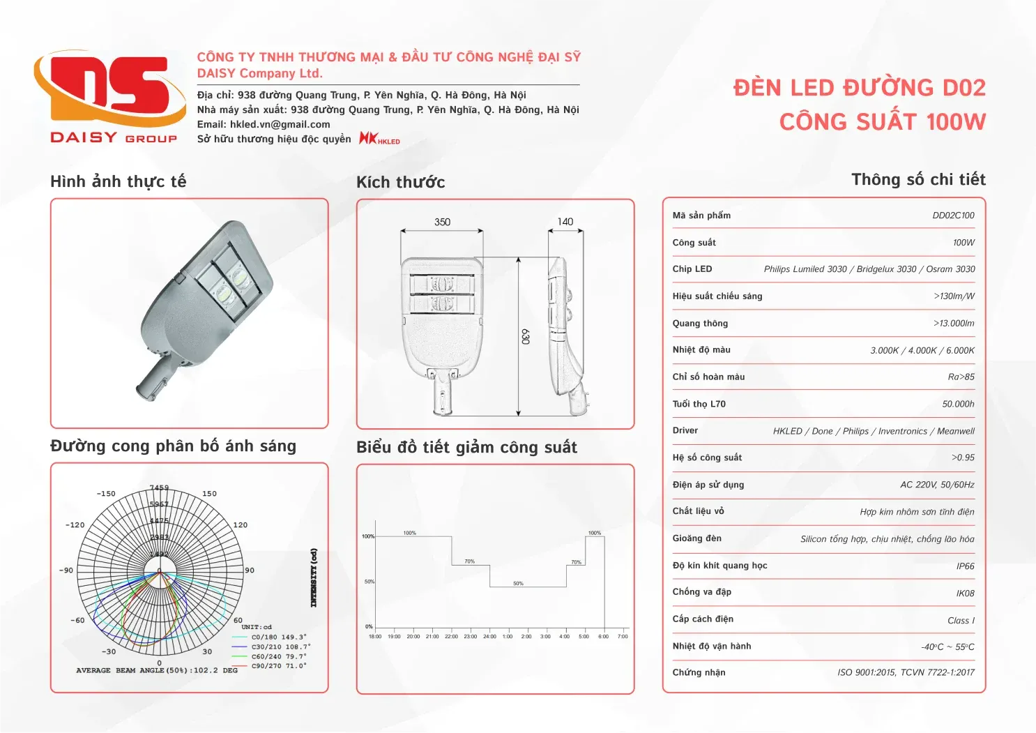 Đèn LED đường phố D02 Module COB – Công suất 100W