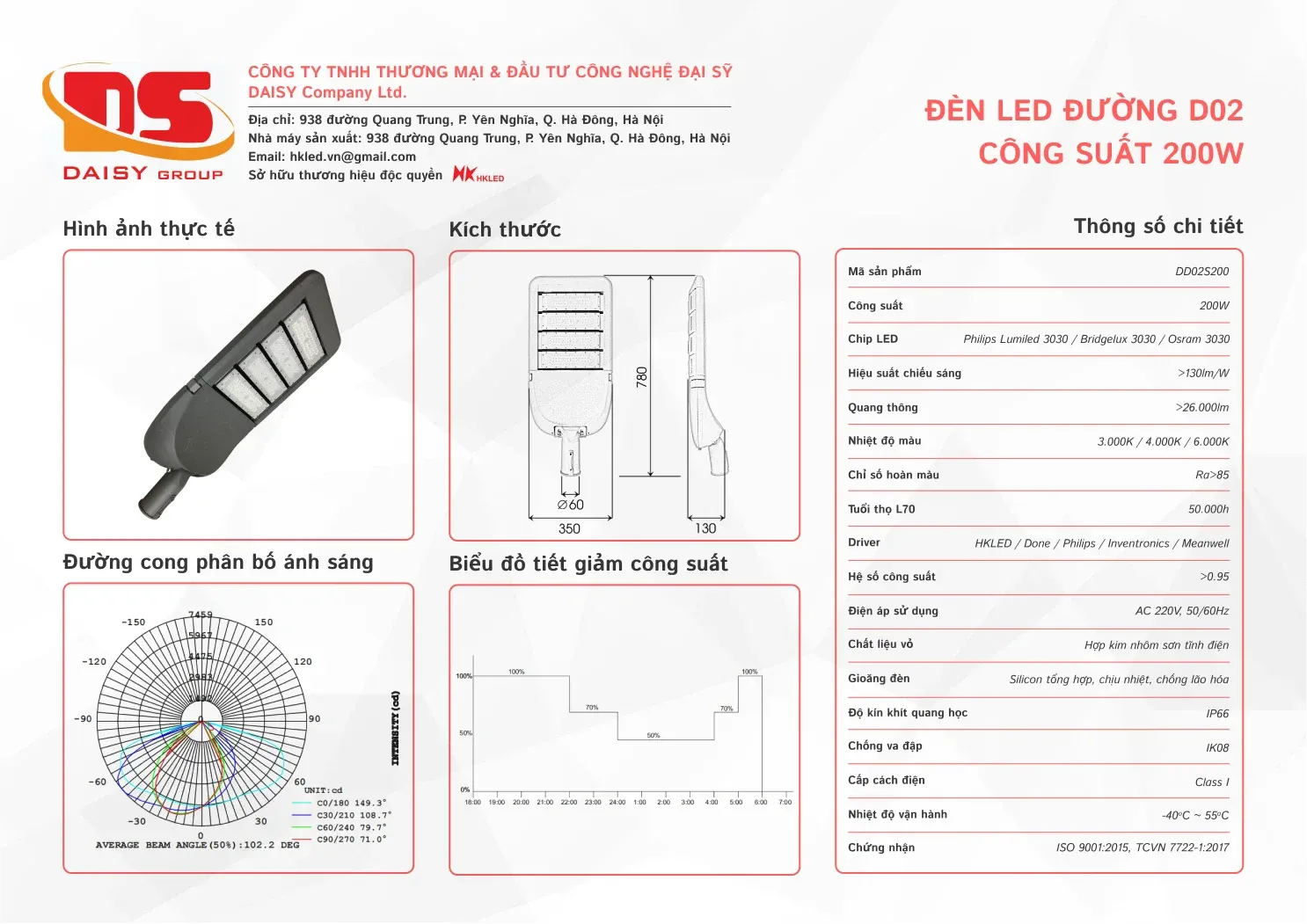 • Hiệu suất chiếu sáng: 130lm/W