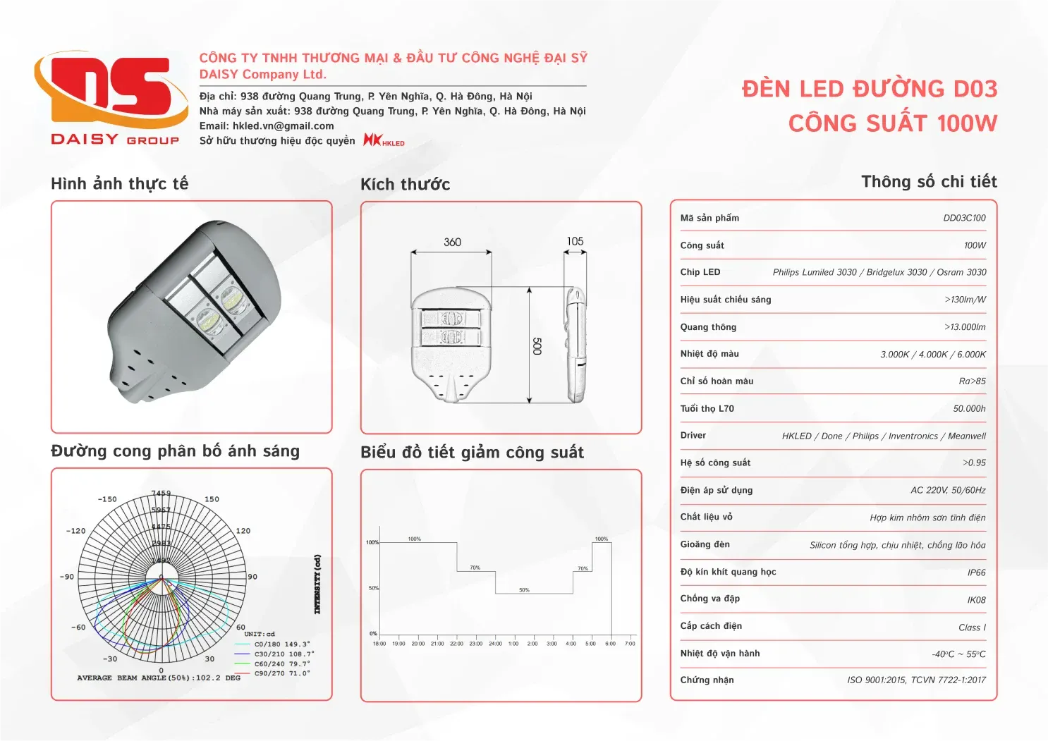 Đèn LED đường phố D03 Module COB – Công suất 100W