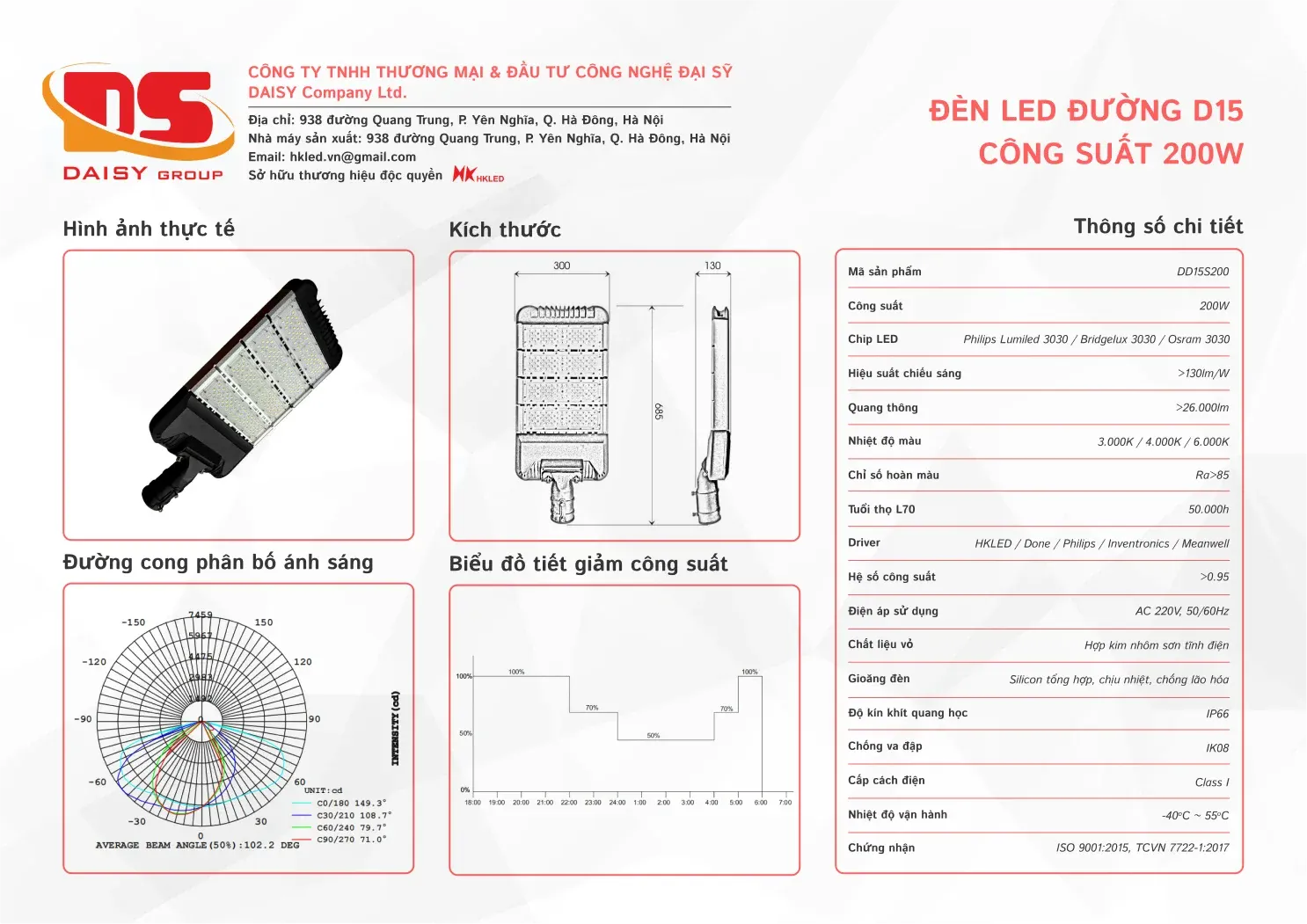 - Vỏ đèn: >10 năm không xuống cấp trong điều kiện ngoài trời