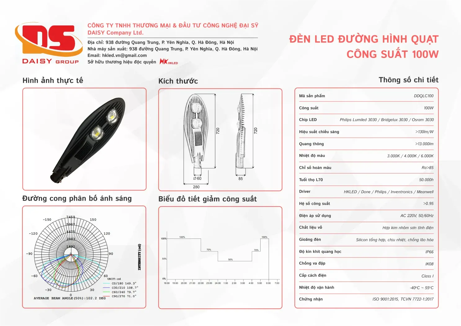 Đèn LED đường phố DQL chip LED COB – Công suất 100W