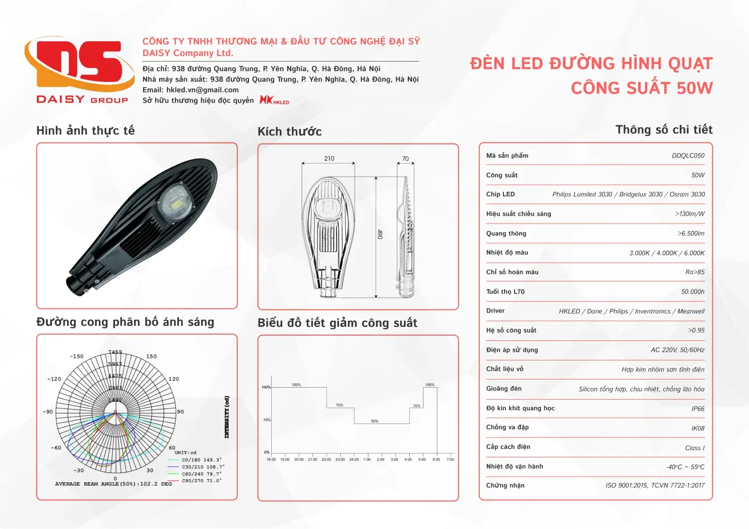 Đèn LED đường phố DQL chip LED COB – Công suất 50W