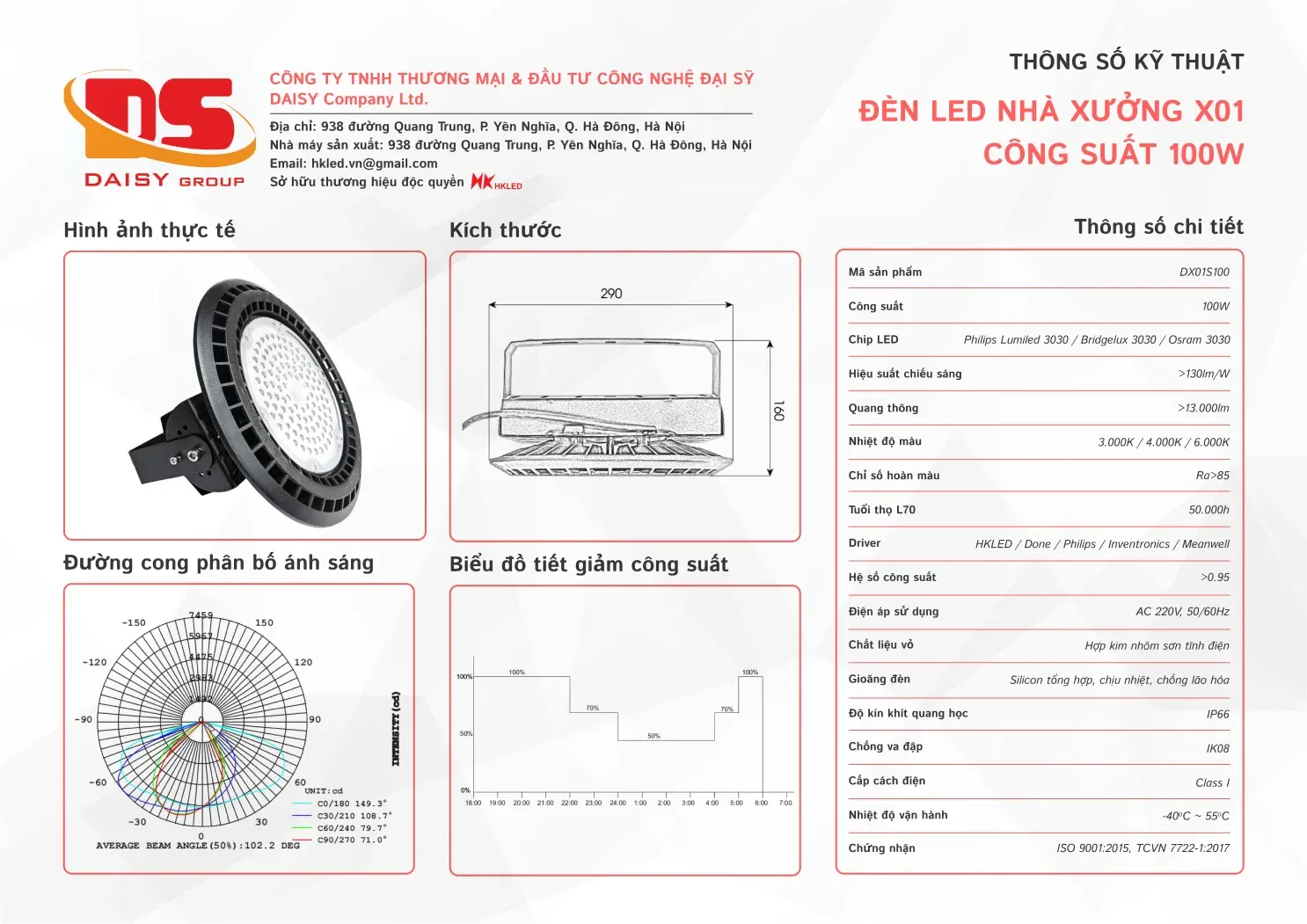 • Hiệu suất chiếu sáng: 130lm/W