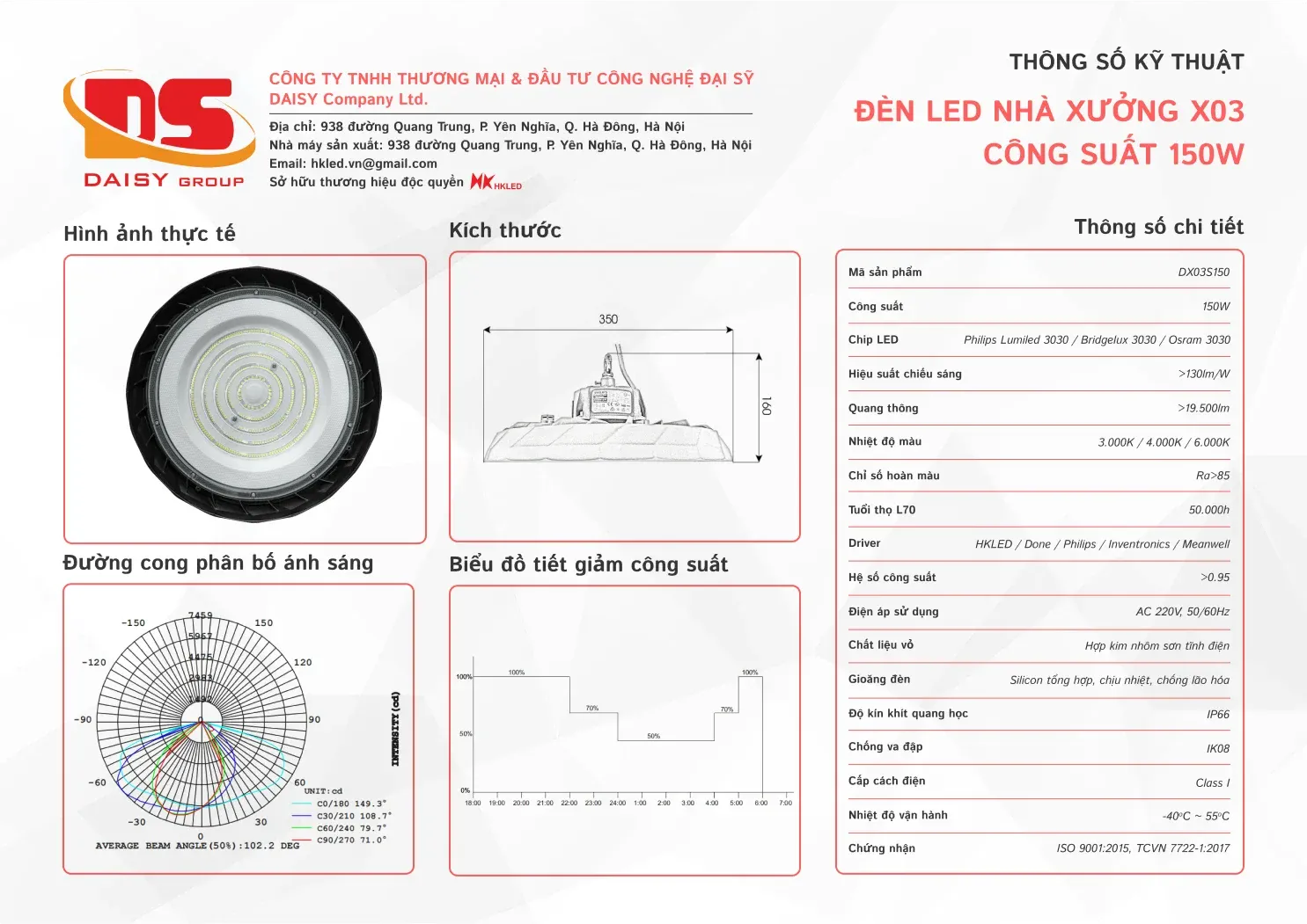 • Hiệu suất chiếu sáng: 130lm/W
