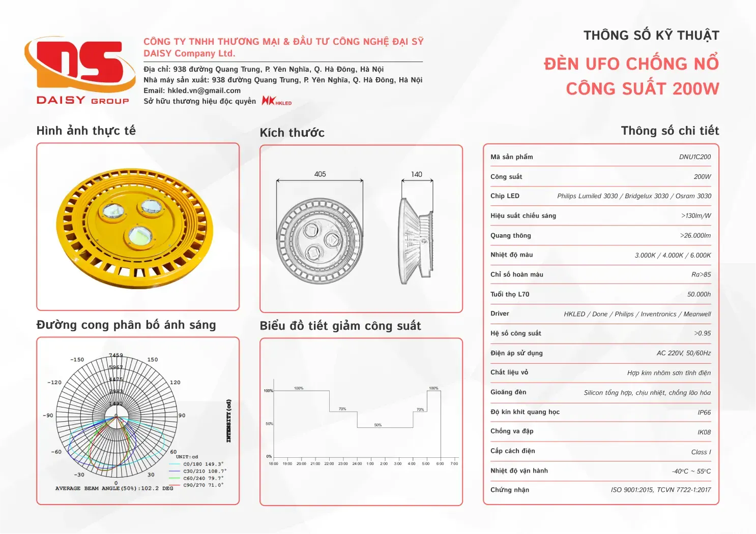 • Hiệu suất chiếu sáng: 130lm/W