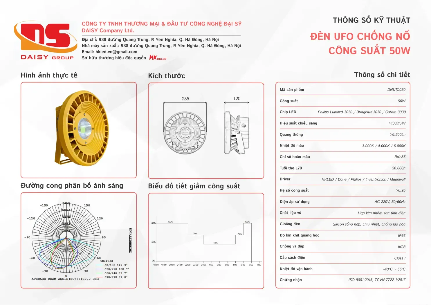 Đèn phòng nổ UFO chip LED COB – Công suất 50W