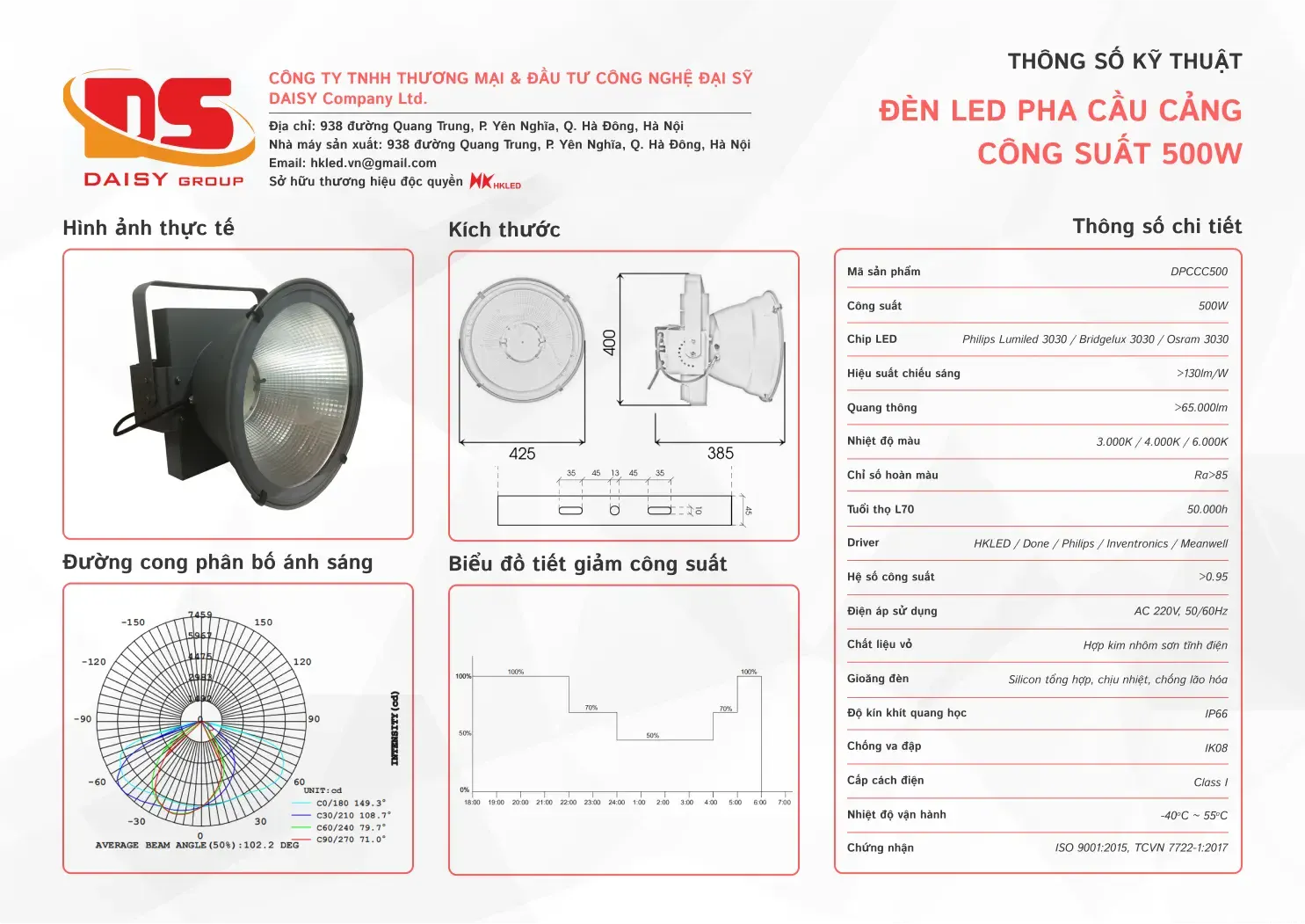 • Hiệu suất chiếu sáng: 130lm/W