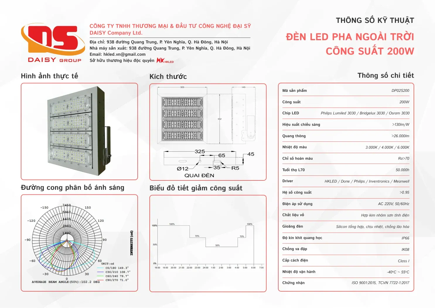 Công suất từ 10W đến 1500W, phù hợp chiếu sáng kiến trúc, sân vận động, công trình công nghiệp
