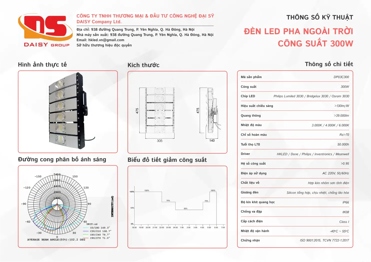 Công suất từ 10W đến 1500W, phù hợp chiếu sáng kiến trúc, sân vận động, công trình công nghiệp