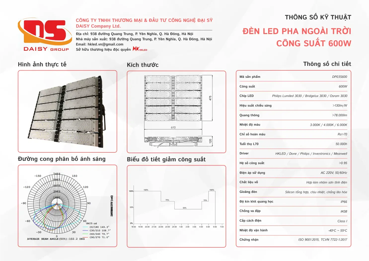 • Hiệu suất chiếu sáng: 130lm/W