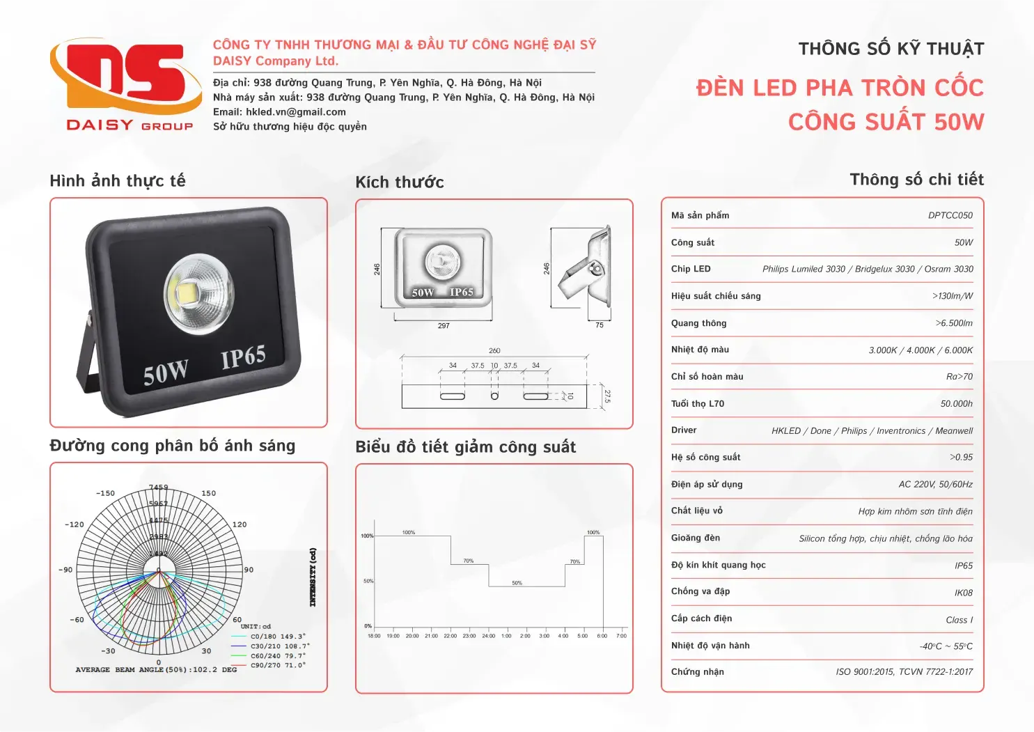 - Nhiệt độ màu từ 2700K đến 6500K theo yêu cầu
