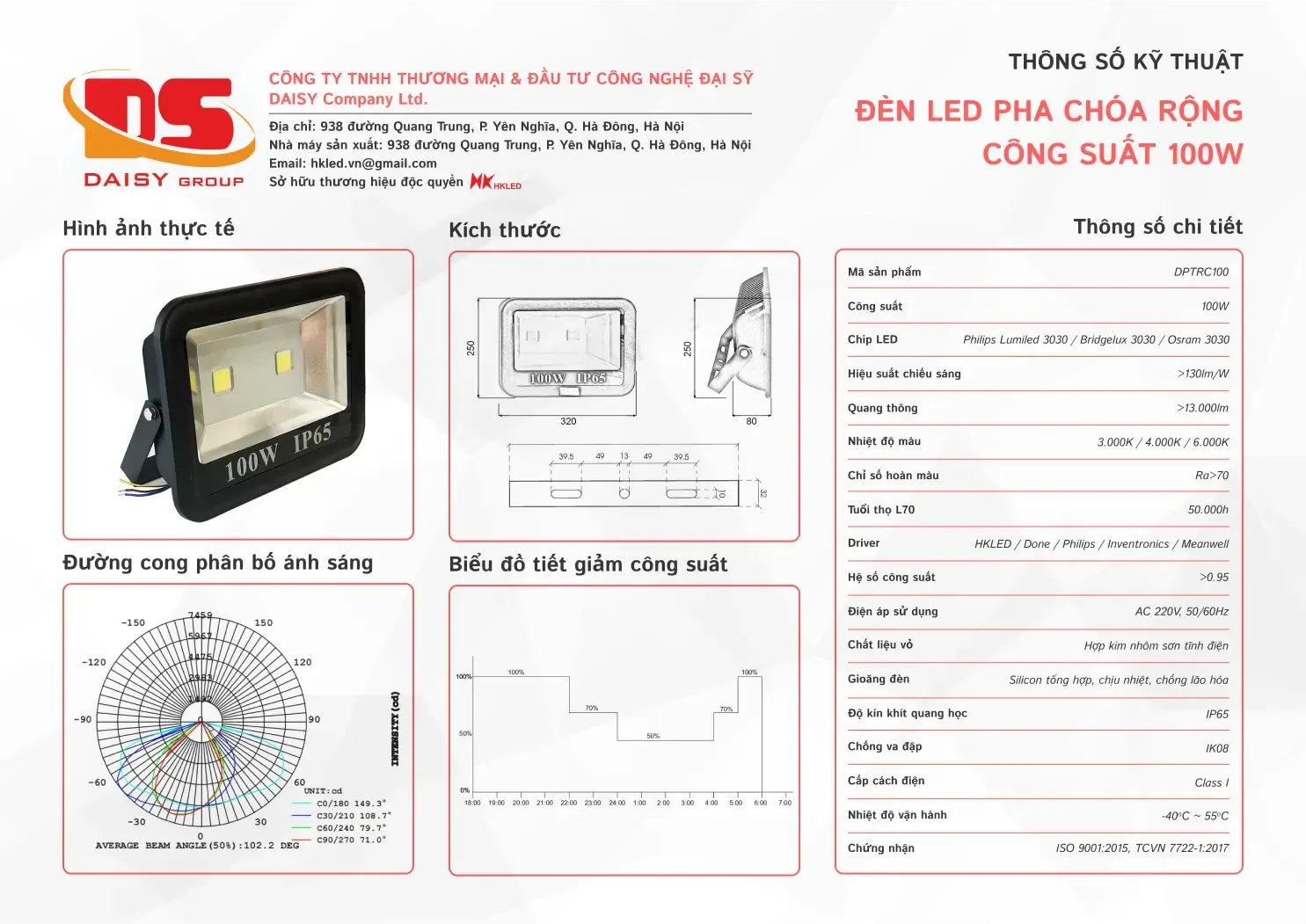 • Hiệu suất chiếu sáng: 130lm/W